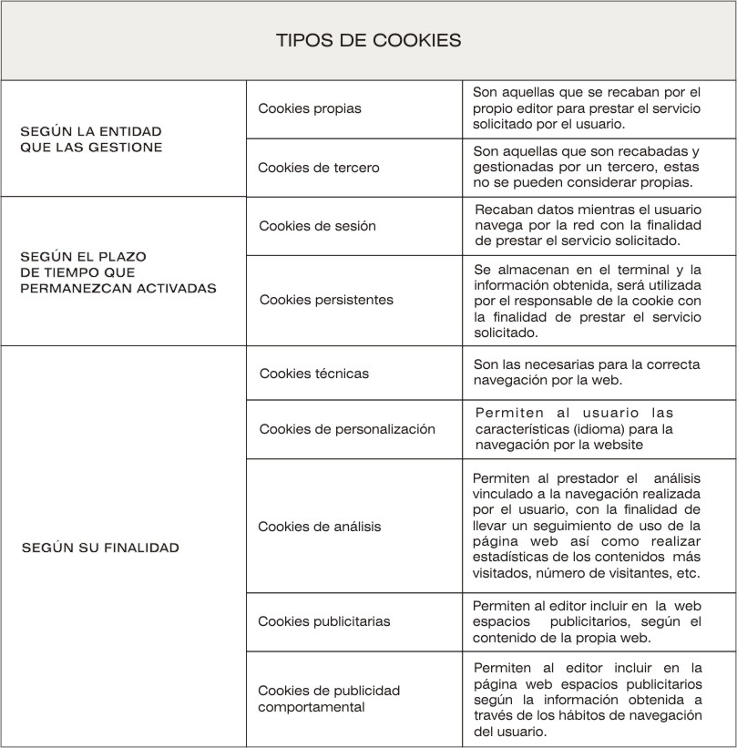 POLÍTICA DE ENLACES Y EXENCIONES DE RESPONSABILIDAD Disfranch no se hace responsable del contenido de los sitios web a los que el usuario pueda acceder a través de los enlaces establecidos en su sitio web y declara que en ningún caso procederá a examinar o ejercitar ningún tipo de control sobre el contenido de otros sitios de la red. Asimismo, tampoco garantizará la disponibilidad técnica, exactitud, veracidad, validez o legalidad de sitios ajenos a su propiedad a los que se pueda acceder por medio de los enlaces. Disfranch declara haber adoptado todas las medidas necesarias para evitar cualesquiera daños a los usuarios de su sitio web, que pudieran derivarse de la navegación por su sitio web. En consecuencia, Disfranch no se hace responsable, en ningún caso, de los eventuales daños que por la navegación por Internet pudiera sufrir el usuario. MODIFICACIONES Disfranch se reserva el derecho a realizar las modificaciones que considere oportunas, sin aviso previo, en el contenido de su sitio web. Tanto en lo referente a los contenidos del sitio web, como en las condiciones de uso del mismo, o en las condiciones generales de contratación. Dichas modificaciones podrán realizarse a través de su sitio web por cualquier forma admisible en derecho y serán de obligado cumplimiento durante el tiempo en que se encuentren publicadas en el web y hasta que no sean modificadas válidamente por otras posteriores. RESERVA DE COOKIES Una Cookie es un fichero que se descarga en su ordenador al acceder a determinadas páginas web. Las cookies permiten a una página web, entre otras cosas, almacenar y recuperar información sobre los hábitos de navegación de un usuario o de su equipo y, dependiendo de la información que contenga y de la forma en que utilice su equipo, pueden utilizarse para reconocer al usuario. Las cookies son esenciales para el funcionamiento de internet, aportando innumerables ventajas en la prestación de servicios interactivos, facilitándole la navegación y usabilidad de nuestra web La información que le proporcionamos a continuación, le ayudará a comprender los diferentes tipos de cookies: ![]() Según lo dispuesto en el artículo 22.2 de la Ley 34/2002, de 11 de julio, de Servicios de la Sociedad de la Información y de Comercio Electrónico (LSSI-CE), Disfranch informa de las cookies utilizadas en nuestra website: ![]() Asimismo, Disfranch informa al usuario de que tiene la posibilidad de configurar su navegador de modo que se le informe de la recepción de cookies, pudiendo, si así lo desea, impedir que sean instaladas en su disco duro. A continuación le proporcionamos los enlaces de diversos navegadores, a través de los cuales podrá realizar dicha configuración: Firefox desde aquí. Chrome desde aquí. Explorer desde aquí. Safari desde aqui. Opera desde aquí. PROTECCIÓN DE DATOS De conformidad con lo que establece la Ley Orgánica 15/1999 de Protección de Datos de Carácter Personal (LOPD), Disfranch informa a los usuarios de su sitio web que los datos personales recabados por la empresa, mediante los formularios sitos en su sitio web, serán introducidos en un fichero automatizado bajo la responsabilidad de Disfranch, con la finalidad de poder facilitar, agilizar y cumplir los compromisos establecidos entre ambas partes. Asimismo, Disfranch informa de la posibilidad de ejercer los derechos de acceso, cancelación, rectificación y oposición mediante un escrito a la dirección: C/ Moianes, 9 SANT QUIRZE DEL VALLÈS 08192 BARCELONA Mientras el usuario no comunique lo contrario a Disfranch, ésta entenderá que sus datos no han sido modificados, que el usuario se compromete a notificar a Disfranch cualquier variación y que Disfranch tiene el consentimiento para utilizarlos a fin de poder fidelizar la relación entre las partes. PROPIEDAD INTELECTUAL Los derechos de propiedad intelectual e industrial derivados de todos los textos, imágenes, así como de los medios y formas de presentación y montaje de su sitio web pertenecen, por sí o como cesionaria, a Disfranch. Serán, por consiguiente, obras protegidas como propiedad intelectual por el ordenamiento jurídico español, siéndoles aplicables tanto la normativa española y comunitaria en este campo, como los tratados internacionales relativos a la materia y suscritos por España. Todos los derechos reservados. En cumplimiento de la Ley de la Propiedad Intelectual se prohíbe expresamente la reproducción, distribución, comunicación pública y utilización, de la totalidad o parte de los contenidos de su sitio web sin el consentimiento expreso de Disfranch. ACCIONES LEGALES, LEGISLACIÓN APLICABLE Y JURISDICCIÓN Disfranch se reserva, asimismo, la facultad de presentar las acciones civiles o penales que considere oportunas por la utilización indebida de su sitio web y contenidos o por el incumplimiento de las presentes condiciones. La relación entre el usuario y el prestador se regirá por la normativa vigente y de aplicación en el territorio español. De surgir cualquier controversia las partes podrán someter sus conflictos a arbitraje o acudir a la jurisdicción ordinaria cumpliendo con las normas sobre jurisdicción y competencia al respecto. Disfranch tiene su domicilio en Barcelona, España. |
